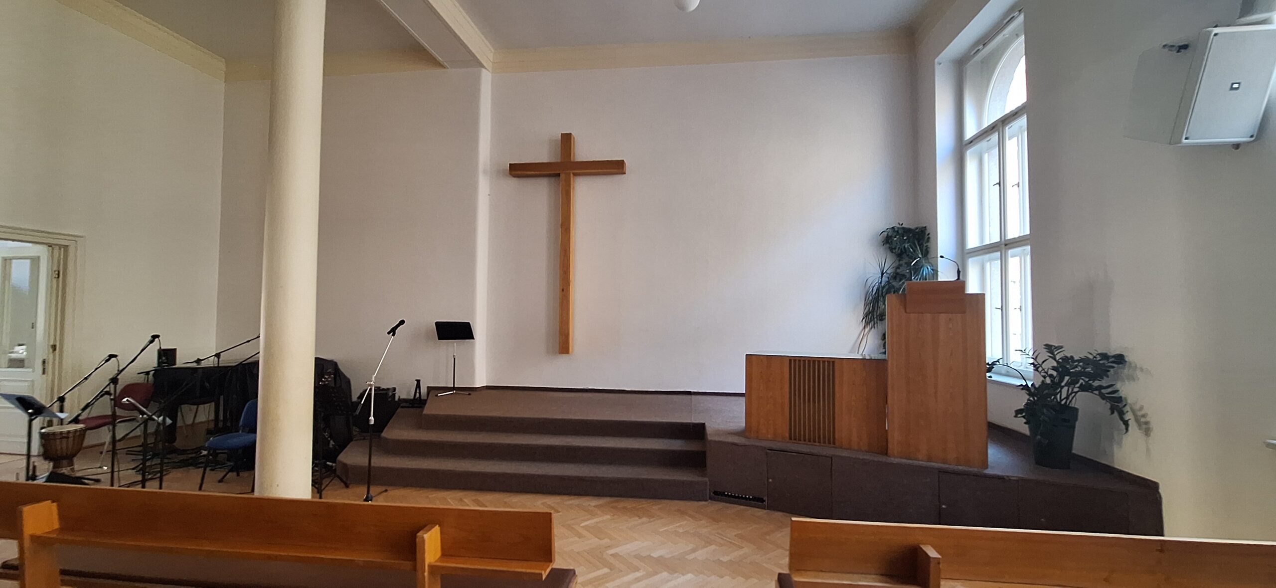 Sál si můžete pronajmout např. za účelem bohoslužby, koncertu, nácviku pěveckého souboru, přednášky apod. Pravidelnou i jednorázovou činnost. Sál nepronajímáme pro akce politického typu.